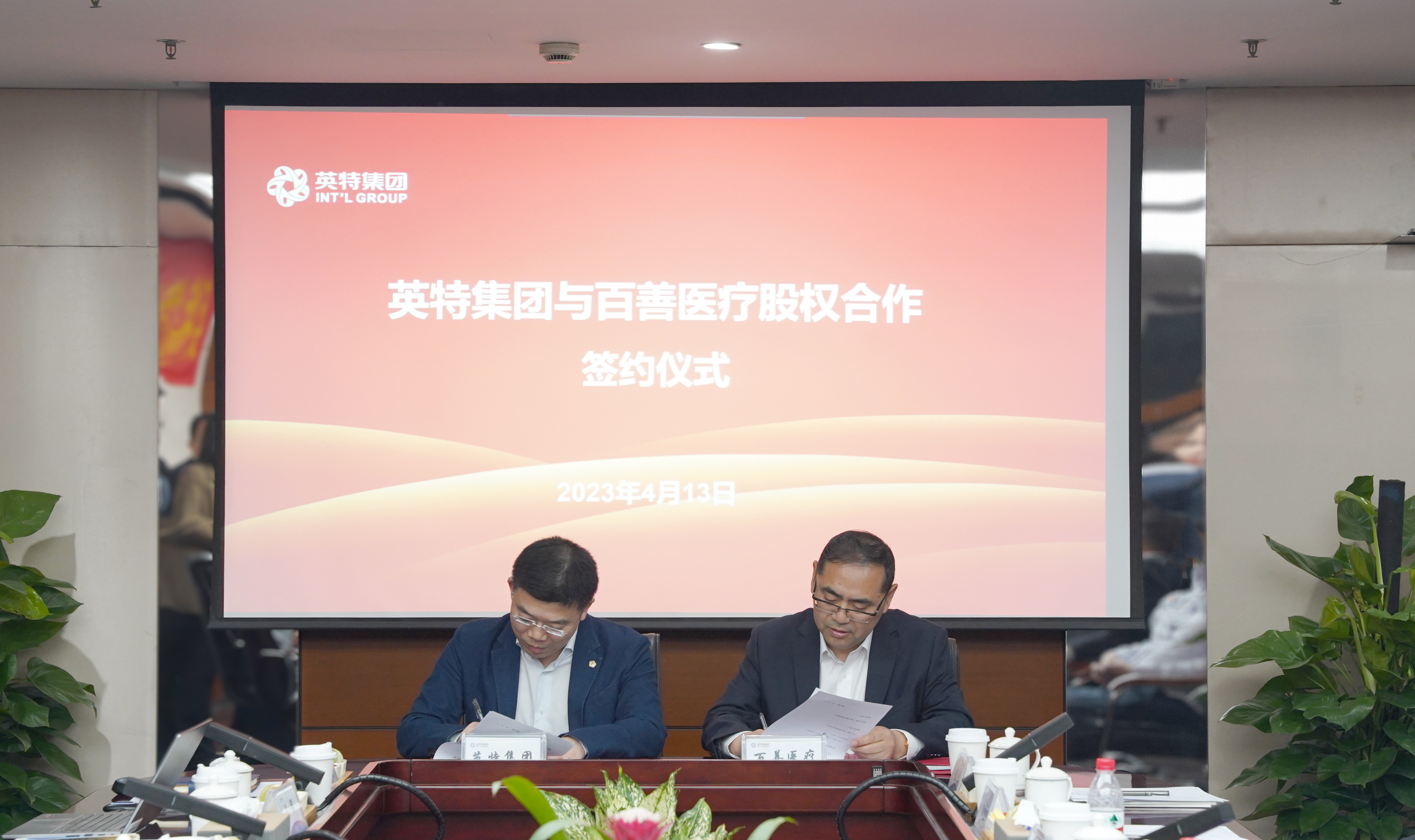 2023年4月13日,英特集團(tuán)與杭州百善醫(yī)療設(shè)備有限公司股權(quán)合作簽約儀式暨對(duì)接會(huì)隆重舉行。英特集團(tuán)黨委書(shū)記、董事長(zhǎng)應(yīng)徐頡與百善醫(yī)療董事長(zhǎng)黃海華分別代表雙方股東簽署《股權(quán)轉(zhuǎn)讓協(xié)議》。